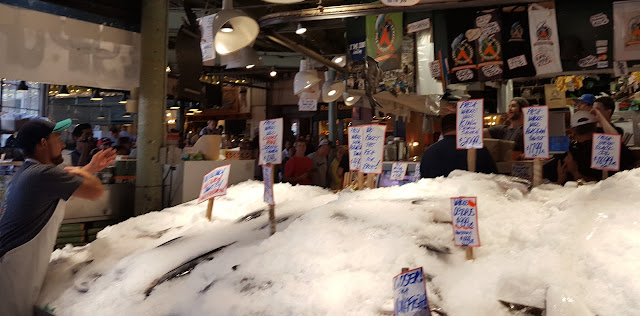 Pike's Market is located a few blocks from where we were staying and adjacent to the water. Above pictures the opening, and of course a tourist mecca.